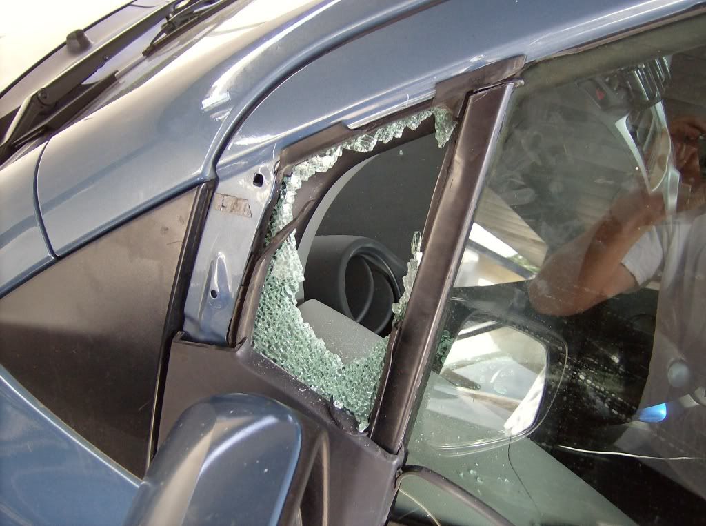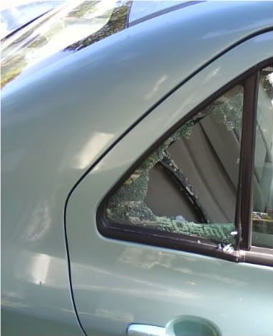 Yeah, so I went to get into my car before work this morning and noticed glass and broken bits next to my car. Apparently someone tried break in and get my sunscreen and my notebook because that's all I have in there. Since I don't have power windows or locks, they weren't able to get the door open that way and couldn't reach the manual lock.