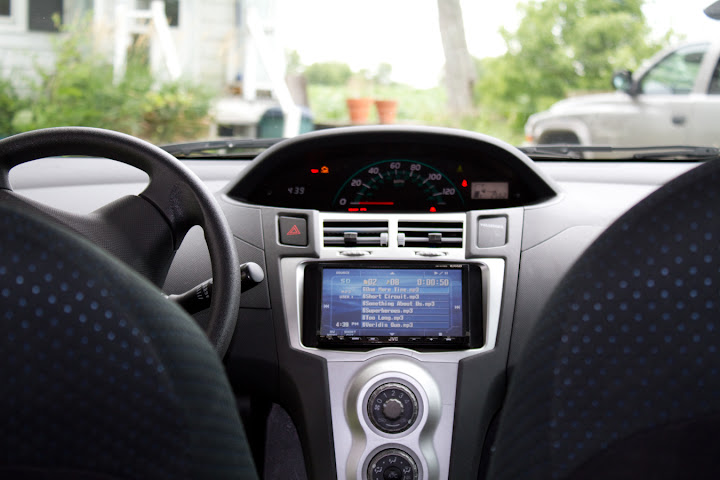My girlfriend and I purchased our Yaris used in April '10. It had about 42k miles, and had only minor scratches and a couple small dents. The dealership agreed to have these repaired with the purchase and they did a FANTASTIC job. We haven't gotten anything too fantastic done with it yet, but once tuition is out of the way...well, let's just say I'm excited ![]() ::MODS:: Cosmetic: Tint (15% AS1, 30% doors, 20% backseat/hatch), TYC Tail lights, de-badged Engine/Trans: NST Short Shift Kit (Engine Bay), NST Shift Cage Bushings, NST Shift Cable Bushings ICE: JVC KW-AVX800 with custom USB mount Time for the pics! Right before the tint, a few days after purchase. ![]() ![]() ![]() (Pardon the dirt and the temp plates :yuck:) Close up of the driver's door after the second tint attempt ![]() Next we did the Head Unit and Tail Lights: Head unit gutted: ![]() New Head Unit Installed: ![]() Head Unit turned on: ![]() Close up: ![]() USB Mount: ![]() ![]() At Night: ![]() Tail Lights Before: ![]() Gutted: ![]() After: ![]() ![]() ![]() ![]() At Night: ![]() Recently got a chance to use a clay bar and got some shots: ![]() ![]() ![]() ![]() You can get a good look at the tails and de-badging in this shot: ![]() And lastly, in the wild next to a newer sibling... ![]() ...and a tiny BMW... ![]() *WHEW* Long post, I know, but thanks for looking! Any feedback would be great as you all have been my source of inspiration and motivation!