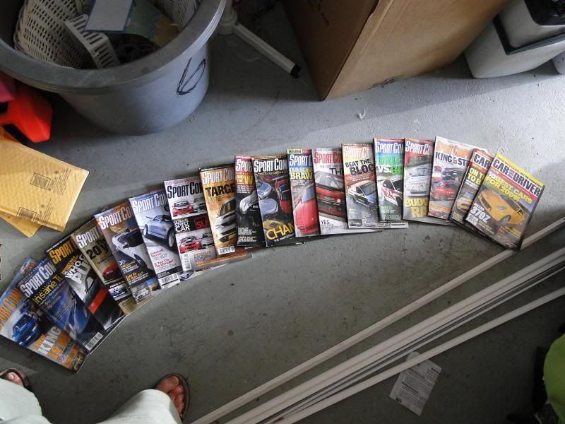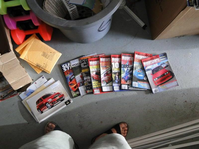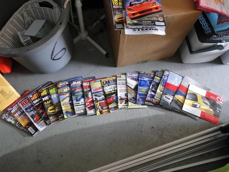 here are some pics....i have about double the amount of mags shown (as i recently came across a stash of SCC, GRM, focus fanatics, and other misc mags (C&D, motor trend, hci, project car, etc). i also found car brocues from an 04 echo hatch, 04 celica, and 04 matrix.