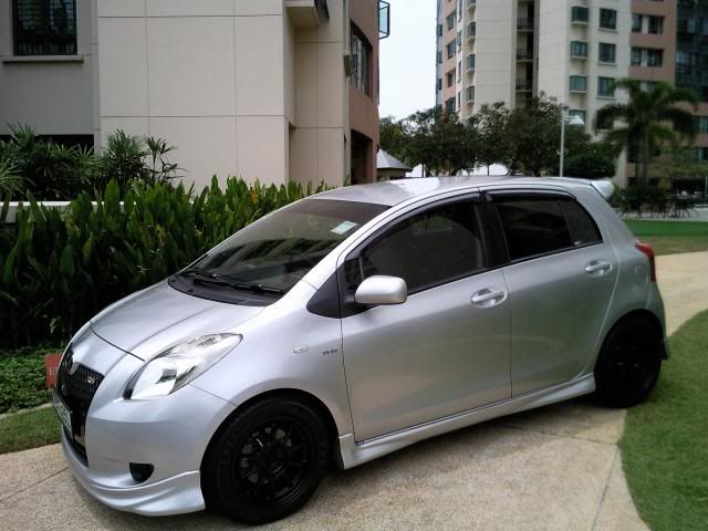 1NZ-FE Yaris with JDM RS front & rear bumper | JDM Vitz RS taillamp | JDM Vitz window visors | JDM Vitz Netz logos | JDM leather steering wheel & shift knob | 4k HID | K&N panel filter | Fujitsubo Wagolis exhaust | NST 10% crank pully | KYB Excel-G shocks | NF210 Springs | Cusco 4 points lower arm bar & Type OS top struct bar | RZCrew sub-frame collars | Ultra Racing 19mm rear sway bar & rear lower & center braces | PG Rear 13mm hub spacers | Exzess 2-pot calipers with 282mm rotors | Runstop Rear Disc | SSR Semi-Forge Type F 15" rims | Michelin Pilot Sport 3 195/55/15 tyres