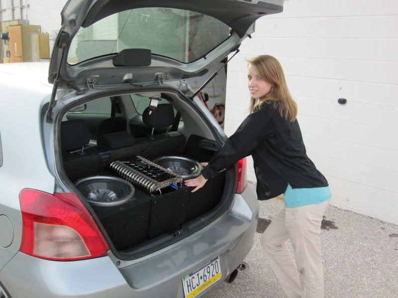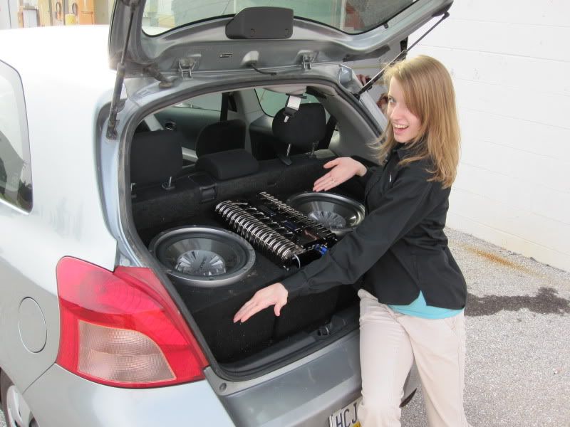 so much for putting anything in the trunk i like mine better but im sure she has a spare tire if she can get to it :) must play pretty good though i just changed the the colors on the rear sub floor from my old pics on this site