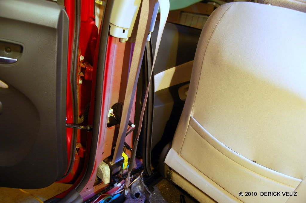 Be careful stuffing insulation around the seat belt, i remember there being a recall on this, something about the seat belt sparking when it was engaging during a collision and starting a fire, i know my 07 had a recall.