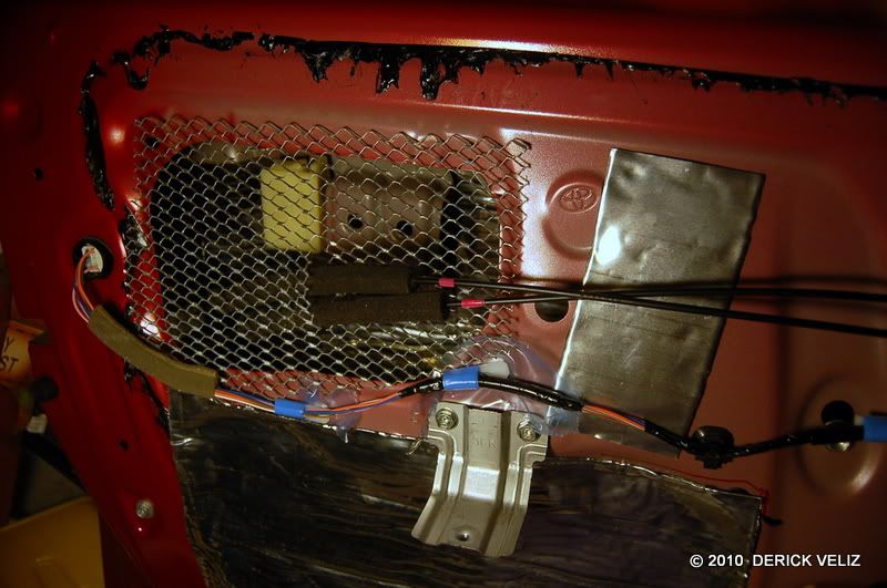 Wires for 6.5 driver, I dislike this task, it's not easy. .. ![]() ![]() Mat over CLD Tiles inside door... ![]() ![]() ![]() ![]() A quick way to make a template to cut the mesh... ![]() ![]() ![]() ![]() ![]() ![]() I'm running out of Mat; there is a layer of Mat + some CLD Tiles behind the inner wall that we don't see here, I'm trying to save the extra thickness that all these layers make so putting back the panel will not be as painful. And 3 layers of Mat behind where the speaker goes, remember these doors become speaker boxex now for the Mid-bass speakers (I still have to go back to the right door and finish it similar to this door). It's nice to have the opportunity to drive with the door in different stages, naked is LOUD, and as I progress it tends to be less LOUD, but as it is right now there is a deafening noise that really bothers my left ear after 1 hour of commute. I don't really need to cover everything, just covering and filling openings. A layer of MLV will go on top after some Ensolite and some CCF over the MLV. .