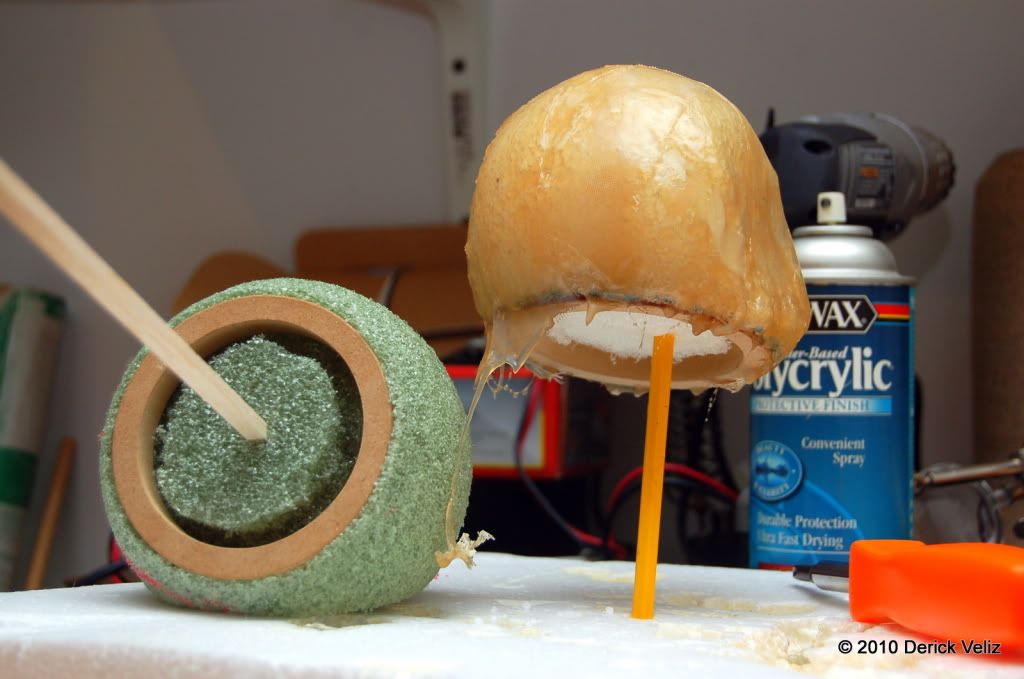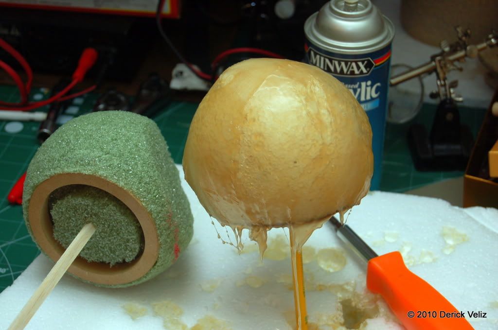 So I end up using some water-based Polycrylic on the foam balls to prevent melting...