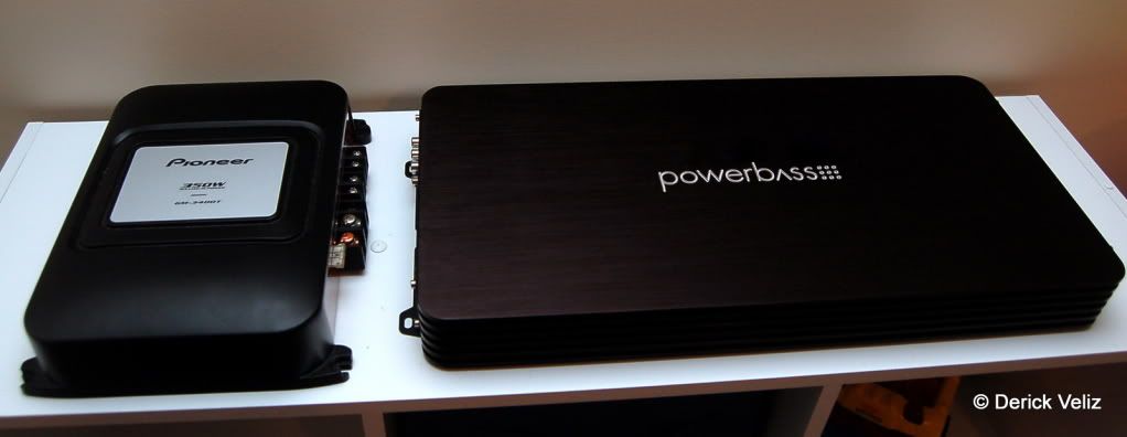 A couple of shots of the PB amp next to the small Pioneer amp...