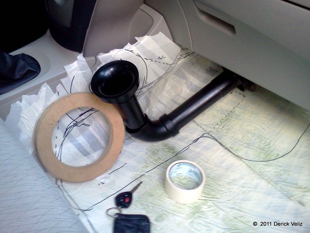 Last week coming back from work I was thinking what if... I had the port in 2 sections using the 90 degree elbow... The picture below shows what I was thinking, consider the port to be 3" shorter using the elbow. Today I was playing around with it and it's a really good option, I still have to figure out how much internal volume is, my guess is that it's pretty close! We'll see: Sorry for the crappy cellphone picture :(