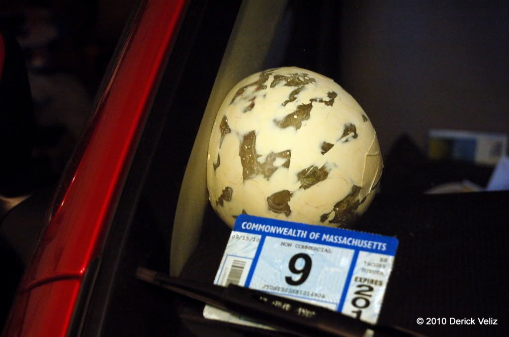 Akkk! Dash mat material? That's a bit thick and farily non flexible compared to grill cloth. It'd be hell to get onto the pillar around the sphere.