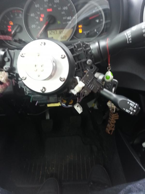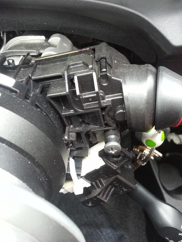 Plastic steering column shroud? DON'T NEED THAT. I screwed the CC into where the shroud screws in for now. I'll modify the column shroud later so that both it and the cc can be used, there seems to be enough space on the bottom right hand side of it for it to fit. I then zip tied the lower portion to hold it still. <3 zip ties.