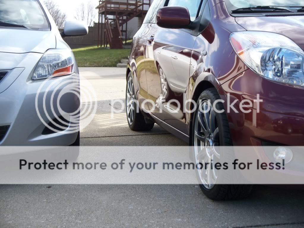 ![]() Mikey here are your pics with Microimages springs, I parked a stock Yaris next to mine so you can compare. For Reference: The Liftback has 215/40/17 tires on Motegi SP-10's Lowered 1.8" The Sedan has 185/60/15 tires on the stock rims with stock ride height Side Shot of the Lowered Yaris Side to Side of Stock vs Lowered ![]() Ground Clearance Comparison ![]() Wheel Well Lowered