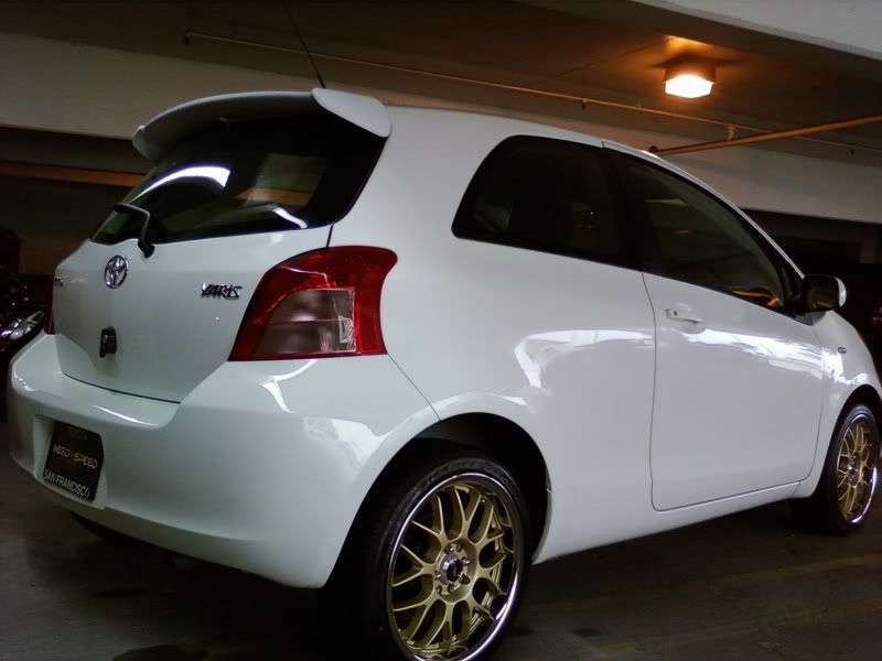 OHH I'm so happy! the rubbing it's gone! I installed my new O.Z. Ultraleggera 16x7, 37mm offset, with 195/50/16 rubber! they are awesome, and about 7 pounds lighter than the OEM with snow tires I use. I also added a 10mm spacer in the back. BUT... I was having rubbing issues on the rear axis. And thanks to people here in Yaris Wold, I got many possible solutions: 1. Take out 10mm spacers (for some reason there are stuck) and I really didn't want to do this. 2. Roll the fenders 3. Add a Camber Kit 4. Add a RING-TYPE COIL SPRING STABILIZER So I started with number (4)- Spring Stabilizers, I installed them last night, put one OZ and went for a ride! NO RUBBING, ok I went back home and put the other OZ and test them this morning on my way to work. NO RUBBING!!! The rear suspension got a little harder (not as soft) but feels really good! Lift UP the rear about 1/2 inch bringing the car to almost level with the front suspension the NF210s really make the car look like if I had something very heavy in my trunk, and now my car handles so much BETTER! like Loren told me about the Spring Stabilizers: "Just jack up the car and squeeze on in on each rear spring. Will raise the ride height a little, and by removing an active coil from the spring, also raise the spring rate." I'm still going to do the Camber Kit (there is no rubbing with full tank and my self but I bet once I add weight the tires will hit the fenders again) so this may help, I'm going to load my car and test it before adding camber. Roll the fenders as well! and if everything works well under LOAD I'm going to try to keep the spacer because looks so GOOD. ![]() ![]() ![]() Derick.