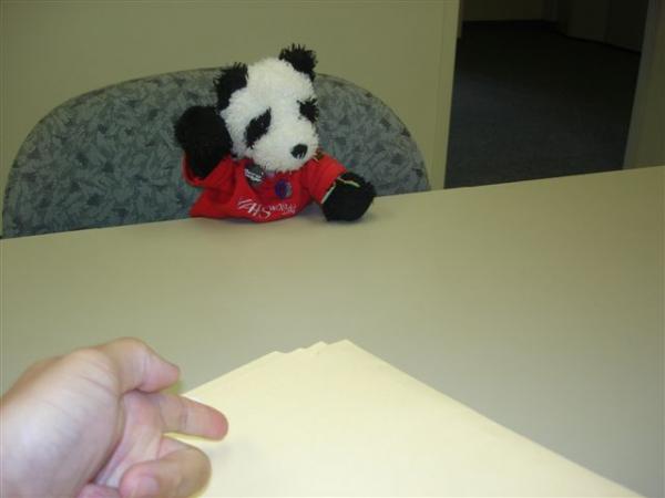 Since we are lacking panda photos, I thought I'd post one from the past with the OG, Bambo. I remember like it was yesterday, I took him into my office and then showed him around the interrogation rooms.......((fades into dream sequence, harp music playing))...........