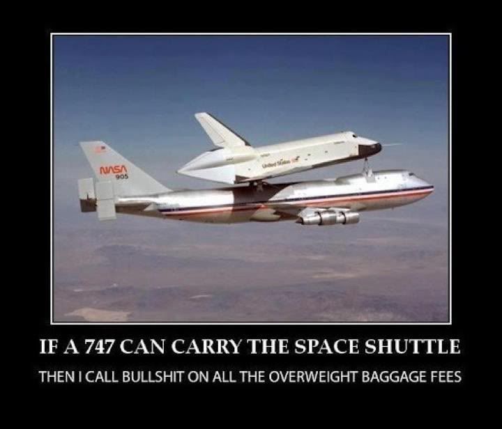 And personally, I think overweight baggage fees are just great, thanks. I see drag everything into the cabin of an airliner except a refrigerator as "carry-on". Some of the duffels being jammed into the overheads could have contained bodies fergodsake. My wife and I spent 6 weeks in Europe with nothing more than underseat carry-ons. If you have to take the grandkids their Xmas prezzies, mail the damn things... |