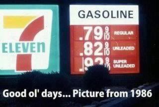 ![]() Actually, it's funny because I remember NEVER paying more than $14-15 to fill up my Mitsubishi (this would've been the early '90s, however).