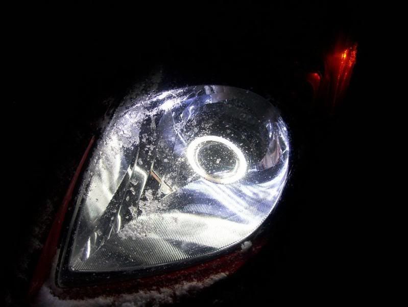 took some pics tonight, but the car was covered in snow/ice... a bit too far away to get the parking light and halo separately... ![]() with flash ![]() drivers side ![]() ![]() passenger side ![]() in front of the car, halos/parking lights only ![]() low beam ![]() high beam ![]() i have to say that they are NOTICEABLY better than HID's in the depot headlights...