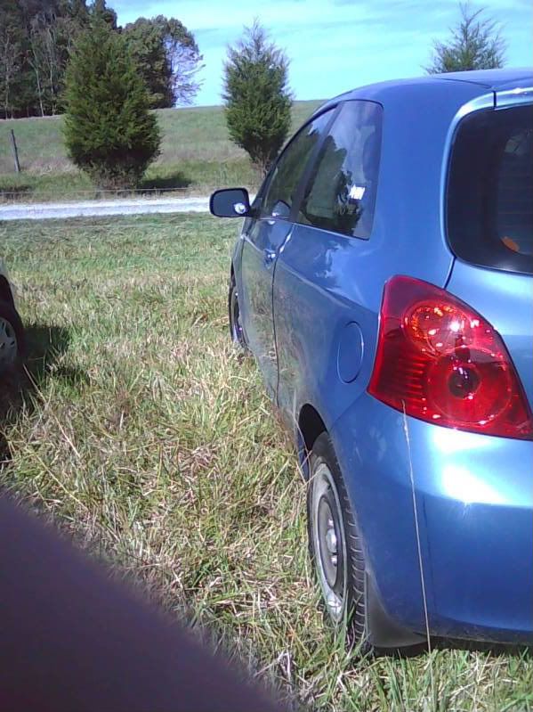 Heres some crappy cellphone pics from today... I didnt mean to take pics of the new spaced out wheels .... my car just looked lowered sitting there in the grassy field, LOL.