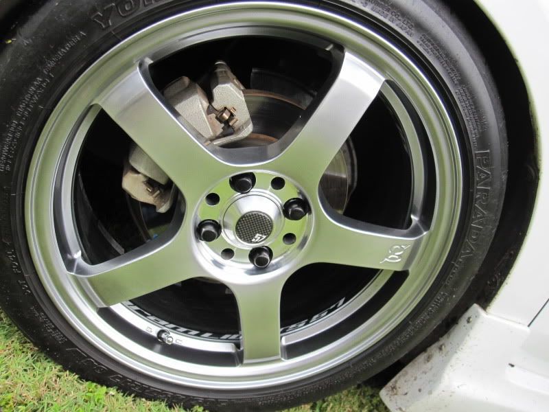 Thanks to 808_Yaris, I got an extra set of wheels, and I love how they look on my car! I picked up his 17 x 7 Gram lights. They have a 205/45/17 tire on them. Not sure about the offset of the wheels; but i am still using one 13mm and one 10mm spacer for the rear. If I ever get a tune and a track opens up, i'll throw the SSRs back on. Sorry Garm, I'm keeping those still! ;)