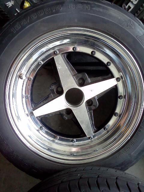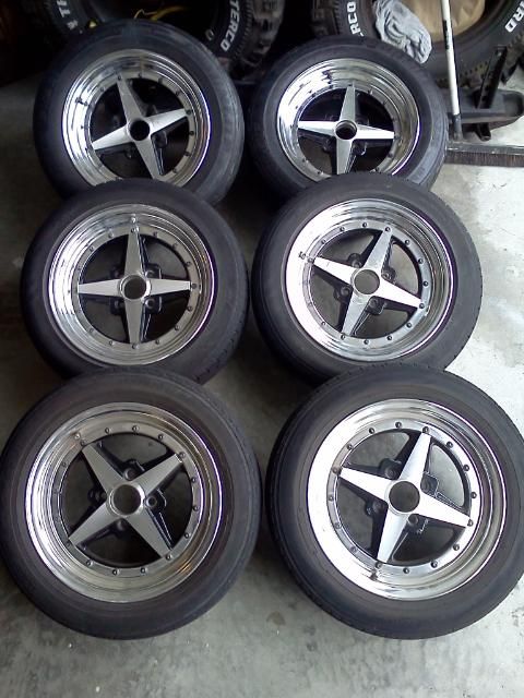 Work Equip 01 Starting at the top: 14x6.5 +6 50% tread Middle pair: 14x6.5 +29 75% tread Bottom pair: 14x6 +35, tyres pretty well worn out. As you can see in the pics, no dents, still round. #3 and 4 have some curbage. #3, 4, 5, 6 have clear coat coming off. ![]() 1 ![]() 2 ![]() 3 ![]() 4 ![]() 5 ![]() 6 ![]() I'd like to get $1300 Thanks. |