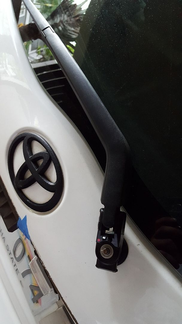 Does anyone know how to remove the rear wiper arm from the motor on the rear hatch? I have a 2014 LE and it seems to be stuck on there. I took the 10mm nut off but the arm seems to be still held onto the motor by something. I'm removing it for aesthetic purposes. I found a plug that goes in the place of the wiper.