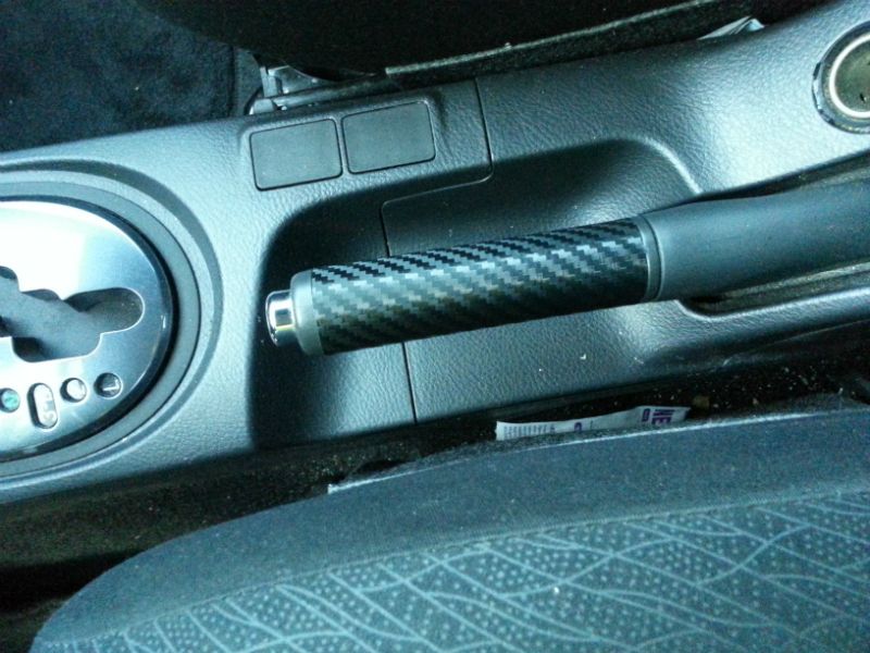 So I had a lot of leftover carbon fiber wrap and it was a close match to my neffy wrap dash. Decided to cut a piece and wrap it around my ebrake handle. The cut is slightly off but it was just a trial piece just to see how it would look since i have a ton leftover. What do you guys think?