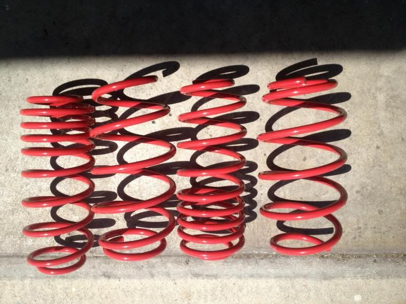 Picked them up for $80 shipped to my door. ![]() They claim to be a -1.9" drop front and rear. I have no idea what the spring rates are. Here is a before pic. ![]() 4x4 status. Then about a 45 minutes later here is the end result ![]() Another one. ![]() They are just as low as my tein s-techs were. The ride is comparable. Handling is way better then stock. Happy !