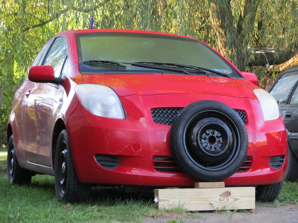 How 'bout you kill two birds with one stone. Take the recent thread where some dude is asking about mounting a Tacoma brush bar onto the Yaris, figure that out, then attach your spare to it.