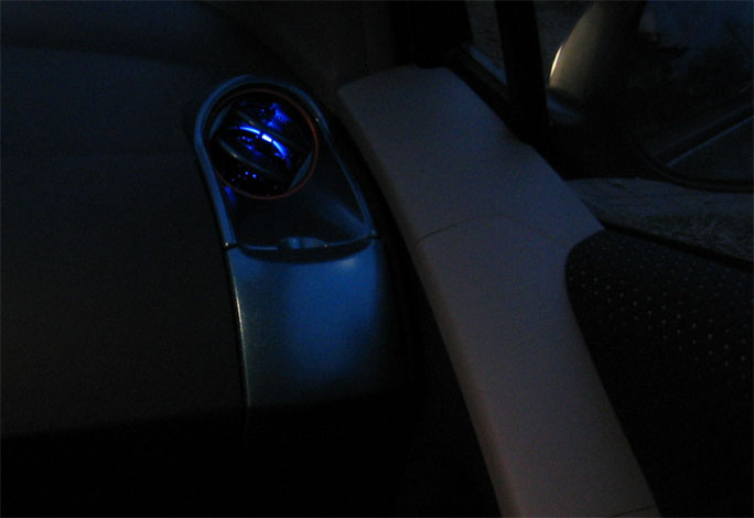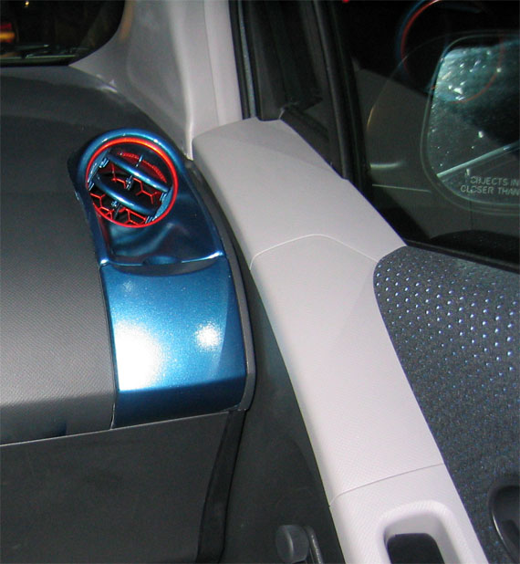 Over the past weekend my girlfriend and I wasted an entire day taking apart the little vent things in the Yaris and painting them. My girlfriend spent hours just taping everything off. Tried to get the entire dash off, and would have if it wasn't for some airbag worries. Turned out pretty good though. She picked out the color scheme and I added some led's into the back of the vents while we had them apart. Turned out pretty cool. Added some carbon fiber trim to the cd player as well. Here's some pics. Not the best quality, as it was dark out.