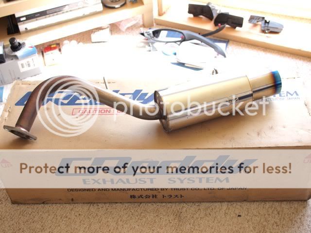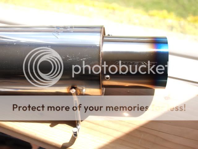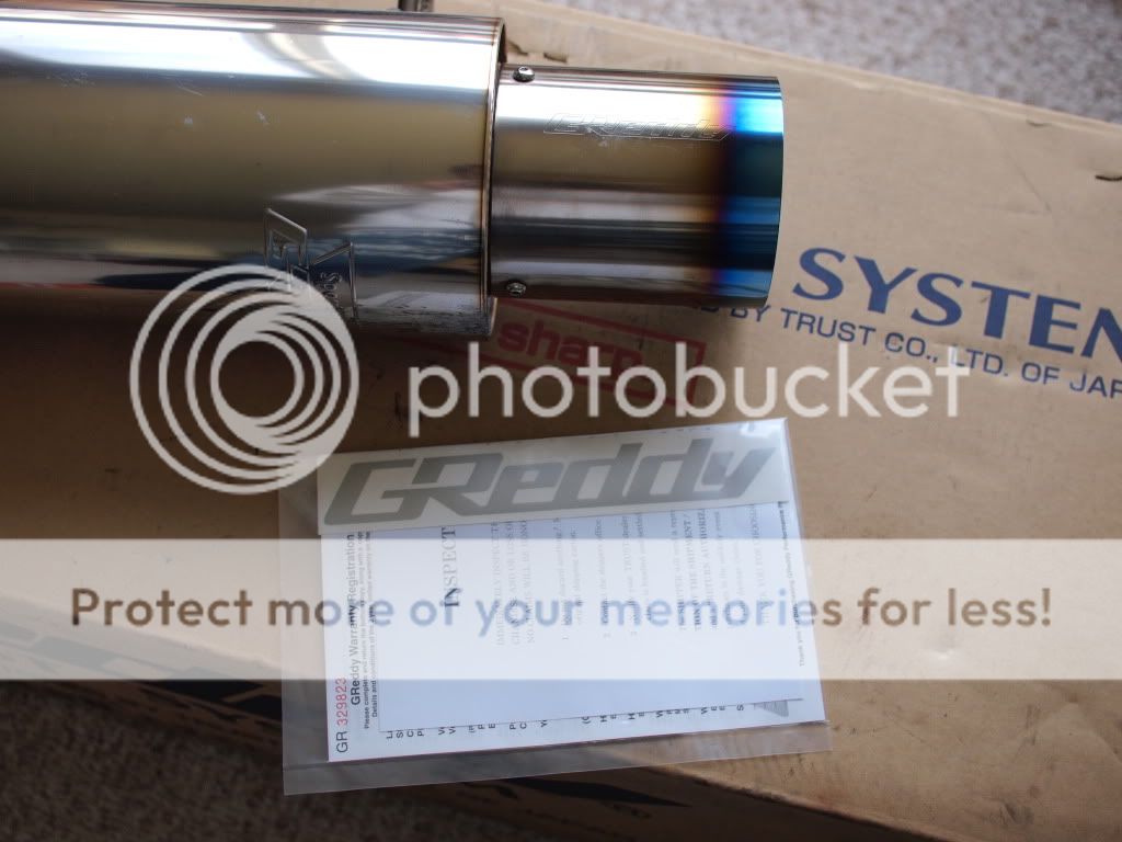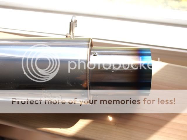 Ok, here is the Greddy Ti-C Exhaust, same here, I put it on less than 3000 miles(might be only 2000 tho..), I'm totally happy with this exhaust(Sound & Hi-End), however I have to bend the exhaust in order to fit my JDM body kit plus a little bit custom works, so I just bought a new exhaust and do all those customs works....this one should go.... Sold, come with original silencer, greddy Sticker ![]() ![]() Basically the Ti-Tip is perfect condition, except the muffler Top ![]() Left ![]() Right ![]() Bottom ![]() Here's the only defect, the muffler hit a road working bump in SF downtown ....it just make the edge of the muffler stick out a little bit...no leaking and dont affect any performance...![]() ![]() ![]() ![]() ![]()