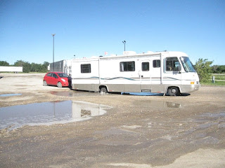 Actually the puddle was a lot deeper then expected and the hitch hung up the motorhome towing the Yaris.