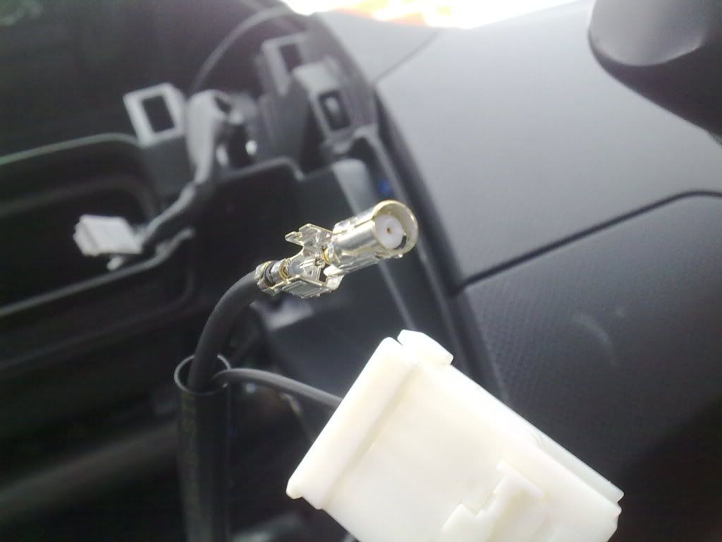 However, this time simply put the middle copper wire through the hole of the OEM connector in the picture and connect the white wire around it to the outer metallic shell of the OEM connector. Just use some insulating tape to keep everything firmly in place. This did indeed work for me but having everything connected properly just felt safer. If you do use this method make sure you keep the little round fuse ball-thing in the OEM connector exposed as it does seem to heat up when using the radio! |