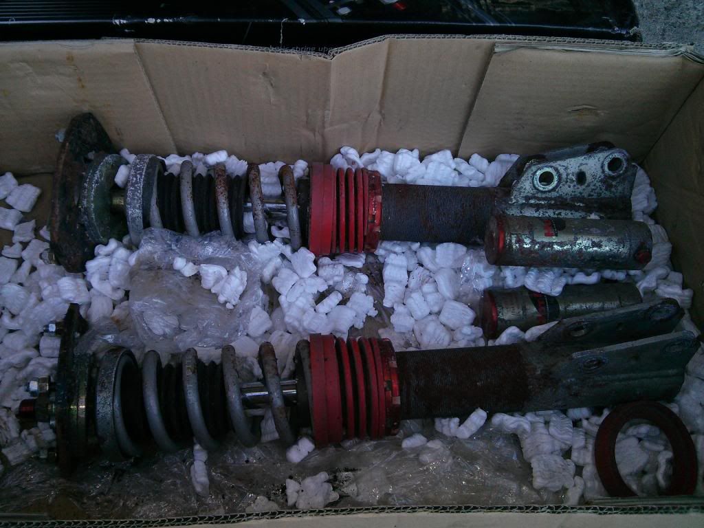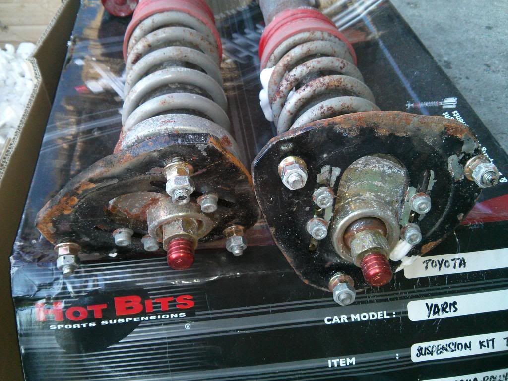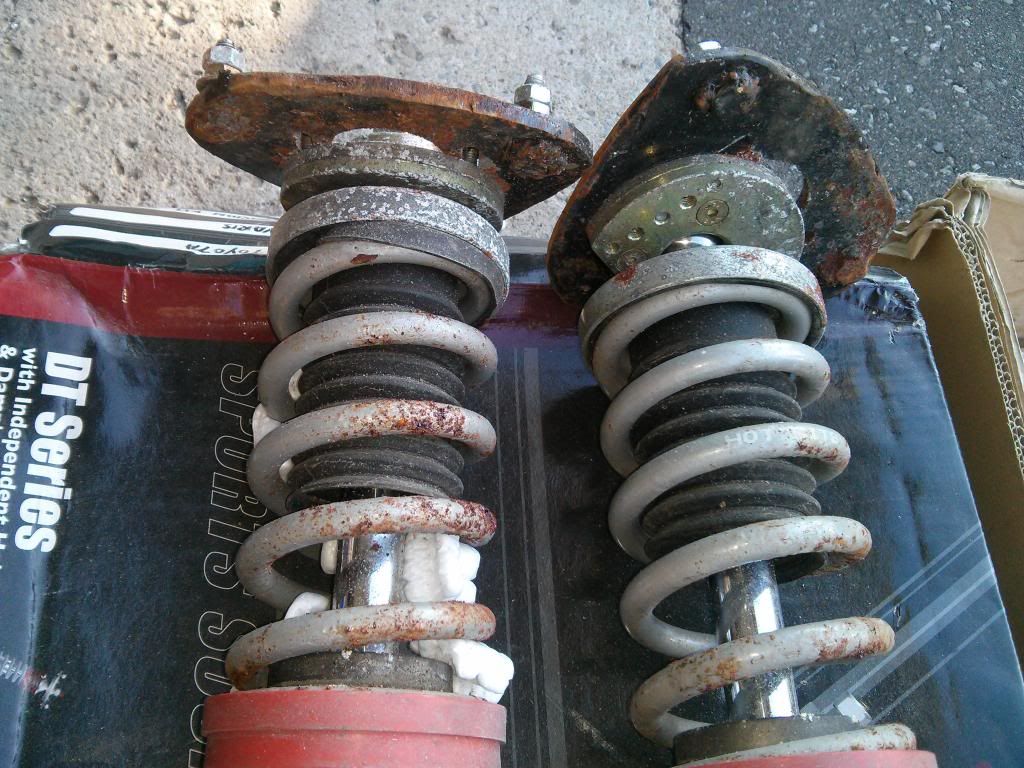 So here's the big partout - pics coming soon: K&N Typhoon short ram intake, off of a coupe, will NOT fit a hatchback. Has a MAF sensor in it (no idea if it's good). Price: $50 NOW $35 NOW $30 ![]() ![]() ![]() ![]() BNIB Replacement friction surface for a Spec flywheel Was told my old parts car had a Spec flywheel, turns out it was only a Spec clutch. The flywheel was actually an Unorthodox Racing unit. Price: $50 (paid almost $100 for this) NOW $40 ![]() Unorthodox Racing (UR) lightweight aluminum flywheel Minor nicks in the center area where one of the clutch's spring tabs broke off and rattled around, all surface imperfections, the friction surface is still fine. Price: $50 SOLD Pic 1 Pic 2 Pic 3 A PAIR of BNIB Timken rear wheel bearings with ABS sensors The BEST wheel bearings you can get for an Echo. Will also work on non-ABS Echo's. Price: $180 (Paid over $125 a piece for these from rockauto.com, plus shipping!) NOW $140 SOLD Pic 1 Pic 2 Non-stock front sway bar off of a coupe Comes with the poly bushings pictured Price: $40 NOW $30 ![]() Sustec rear underbody frame brace Great shape, very little use, ncie and light Price: $50 SOLD Pic 1 Pic 2 GT Spec front underbody frame brace Obviously a little rough from the previous owners use, still straight as a ruler Price: $50 SOLD Pic 1 Pic 2 Pic 3 Pic 4 Front control arms with new Moog problem solver ball joints, new Energy suspension front bushings and new Whiteline CASTER CORRECTING rear bushings The best thing you can do to improve suspension & steering geometry and improve steering response Price: $200 NOW $170 Hot Bits Adjustable Coilovers Fronts have pillowball camber adjustable upper mounts All need a rebuild - the quote from Peter at Hot Bits Canada in Brampton, Ontario was $400 to $700, depending on if new rods are needed. He is a 10 minute drive away from me and I can help facilitate the rebuild if you'd like. This is the BEST upgrade you can make to your Echo's suspension, and with Peter matching the struts to the springs included or the ones you want to use, will be better handing than any other coilovers out there for around $1000 all in! Price: $500 NOW $450 NOW $400 ![]() ![]() ![]() ![]() ![]()