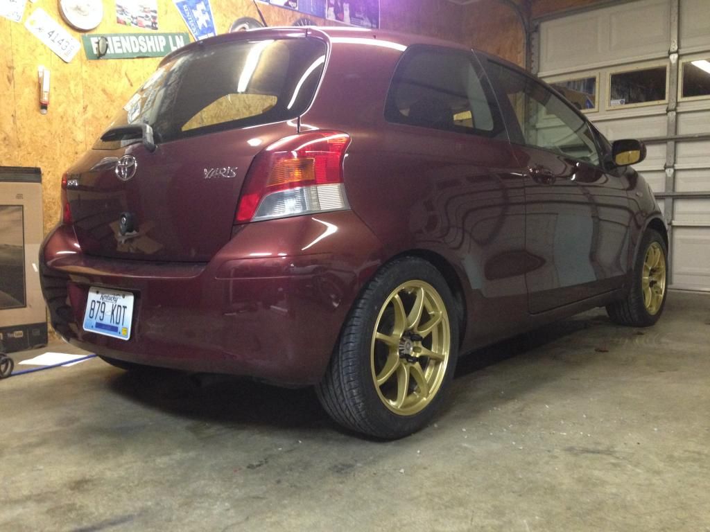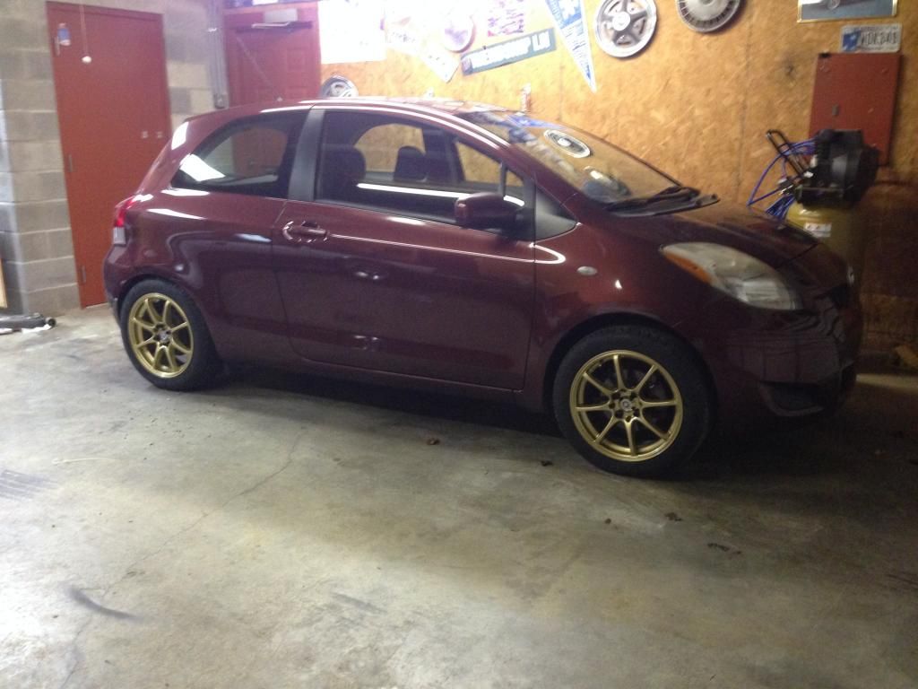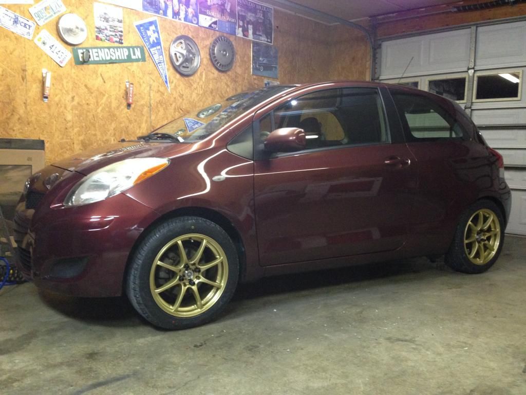 2009 Carmine Red Yaris | Tein S-Techs | Tokico Blues | TRD Rear Sway Bar | RS Replica Spoiler | 16x7 Konig Feathers | Stay tuned..