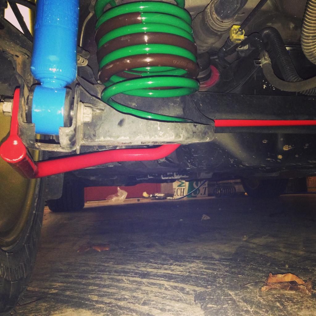 I'm posting this as a funny because I'm only halfway through my suspension process due to waiting on my fronts struts to arrive but here's how she looks as of 12/21/14 with only the rear lowered.