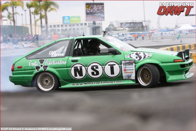 NST Drifter Will Parsons put on a GREAT performance this weekend at the first round of the D1GP, in Anaheim California. As the only AE86 Corolla in attendance, Will put on a great show and was a big crowd favorite with the SoCal fans. Will made it into the round of Top16 Saturday and was paired up against Daigo Saito, the 2008 D1GP season champion. Will had a very solid run and made no mistakes following Daigo, but the 500+ horsepower advantage of Daigo's Chaser was just too much for the little Corolla to overcome. Daigo stayed very close to Will while chasing, and made the run a very exciting one for the fans. Many thanks to all our SoCal fans who cheered us on during round 1. We hope to see a lot of you out in Florida for round 2 at the end of May. Will Parsons Qualifying for Top 30... http://www.youtube.com/watch?v=c4bpqhTyY2M Will Parsons Qualifying for Top 16... http://www.youtube.com/watch?v=l7amLymGcic Will Parsons CHASING Daigo Saito in Top 16... http://www.youtube.com/watch?v=OU2RSmTZn9U Will Parsons LEADING Daigo Saito in Top 16... http://www.youtube.com/watch?v=PjNkuU3rfPE A few pics from the event... ![]() ![]() ![]() HUGE thanks to our 2009 sponsors, TSE Motorsports, Toxic Fabrication, Colt Cams. We sincerely appreciate all your help and support. More coverage, pics, and info... http://www.nonstoptuning.com/pageNSTblog.html And a few more pics from our MySpace page... ![]() ![]() ![]() ![]() SEE YOU IN FLORIDA FOR ROUND TWO!!! ![]()