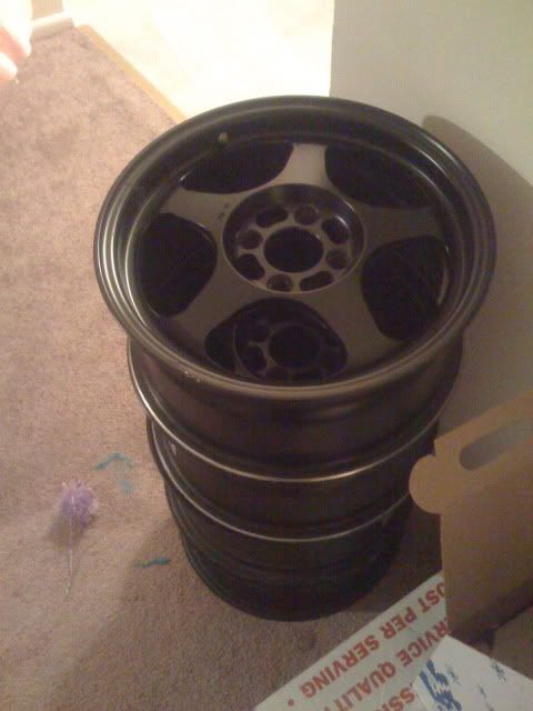 Not mounted yet, but their getting done in saftey orange with Rays blue lugs! Ill also be on coilovers.....