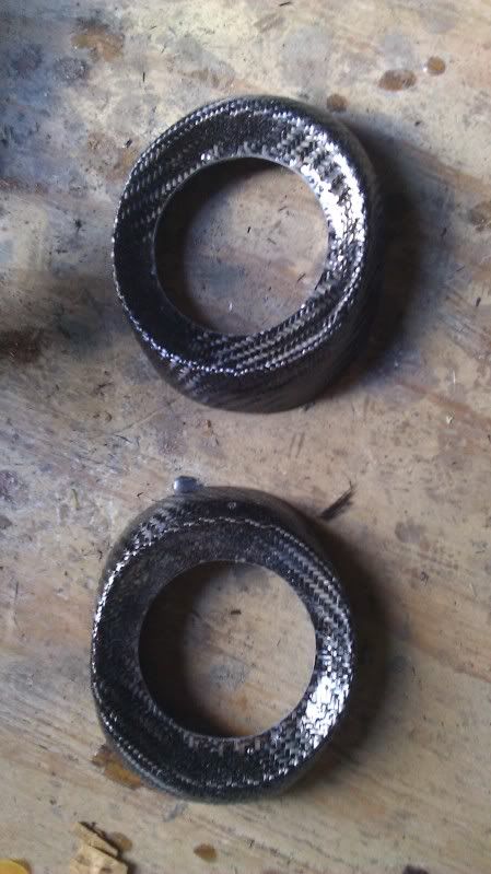 ![]() ![]() ![]() Reflector bowl ![]() ![]() Lens trim ![]() Shrouds ![]() I still have a lot of work to do. Im in the process of making a .dxf program at work for a bracket to mount the projectors. There isn't enough room on the projectors to drill holes and put bolts through so the bracket will be attached where the two projector halves bolt together. The bracket will also have height and rotational adjustability for easy aiming. I'm hoping to have the bracket completed by monday. I'm still going to be running my 5000k bulbs and Denso ballasts. The complete inside of the headlights will be carbon fiber.