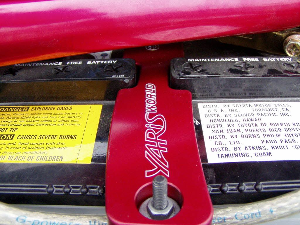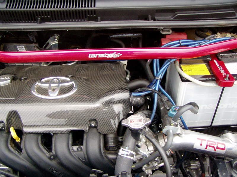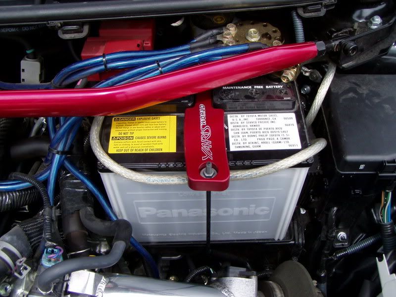 CF engine cover and Billet battery tie down pics.
